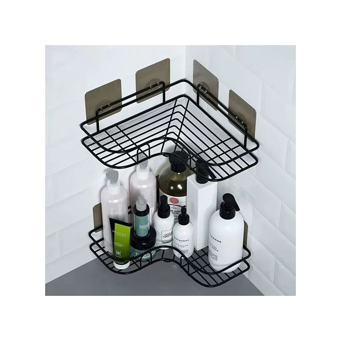 Product details of High-Quality Wall Mounted Corner Shower Shelf with Sticky Hooks - Set of 1,2,3 layer Adhesive Metal Storage Organizer Rack for Shower Caddy, Triangle Basket No Drilling, Design for Bathroom, Bedroom, Living Room, and Kitchen - Bathroom Rack Stand
